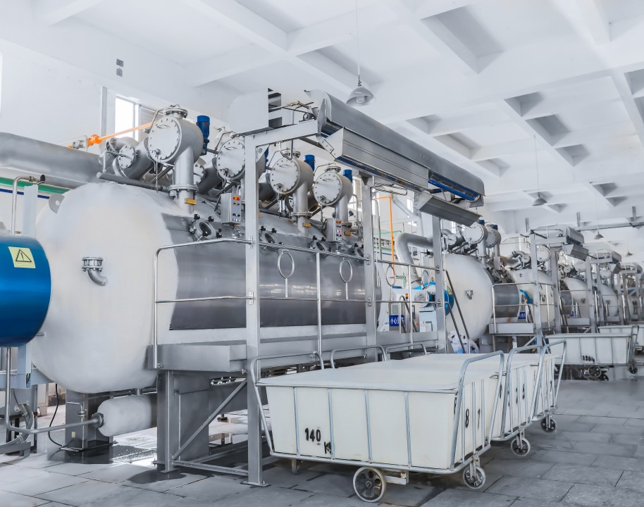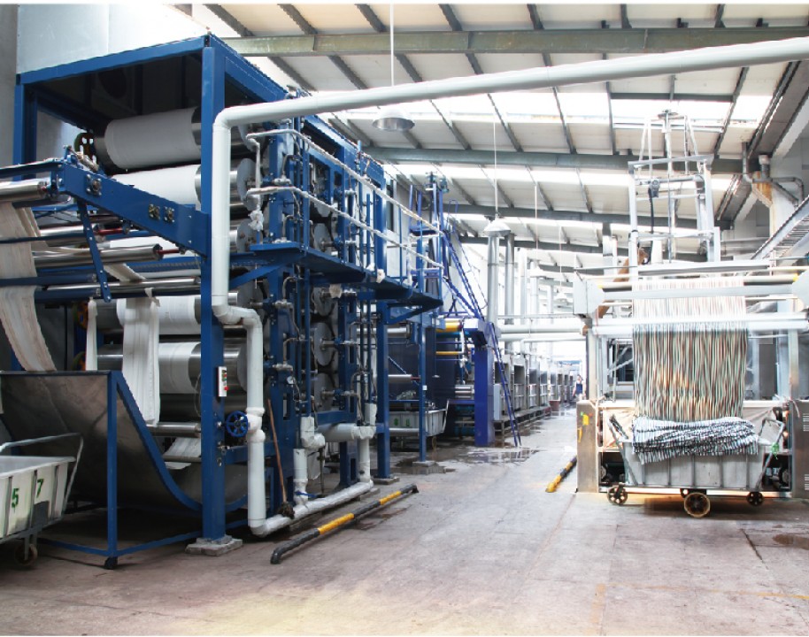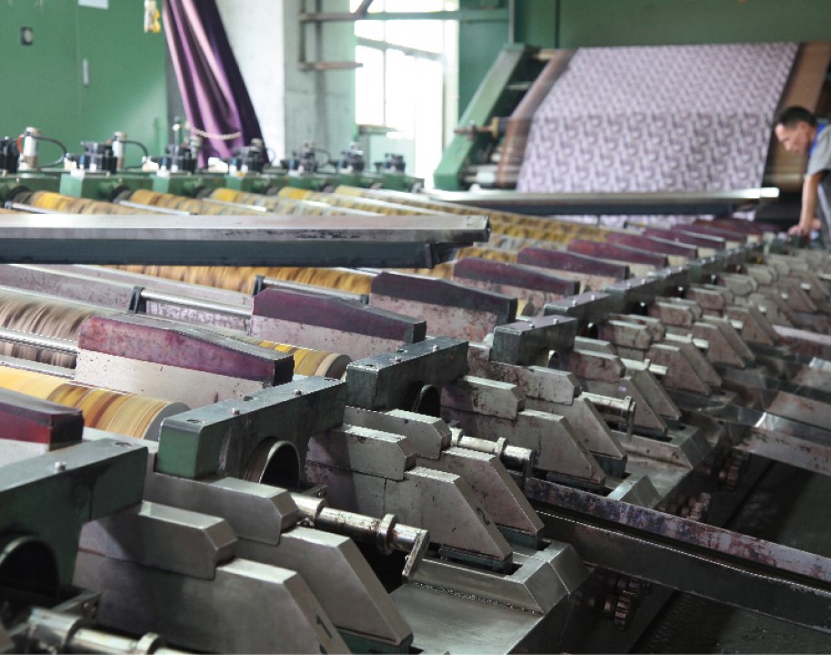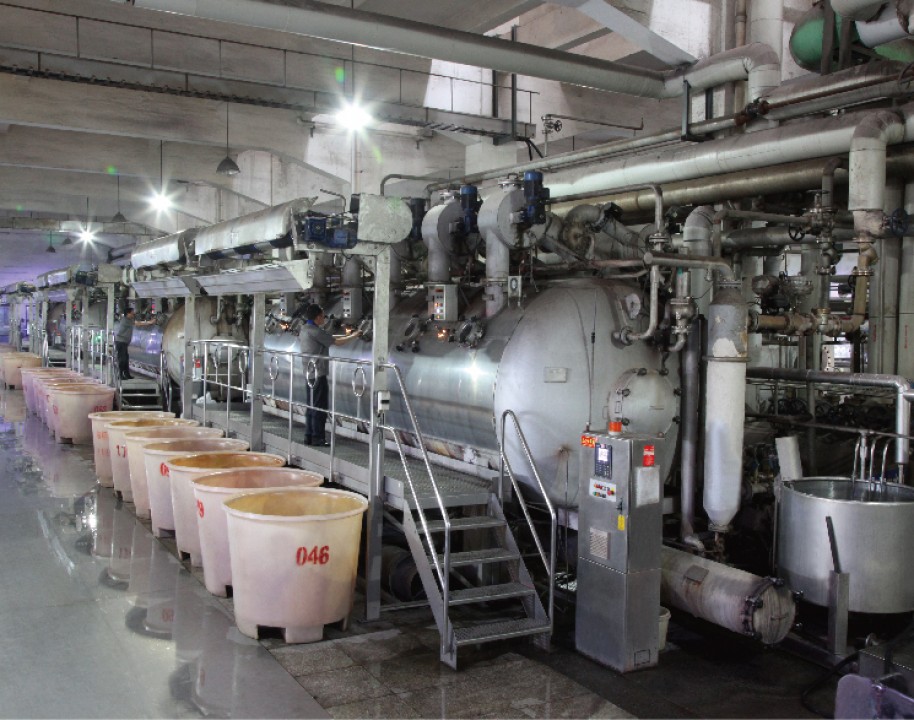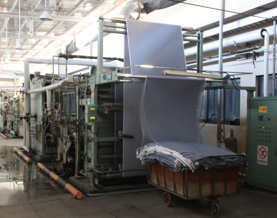It mainly prints and processes all kinds of printing and dyeing products of cotton, t / R, t / C and cotton fur series. There are 6 sets of Korean imported setting machines, 3 long car pad dyeing lines, and supporting front steam bleaching mercerization